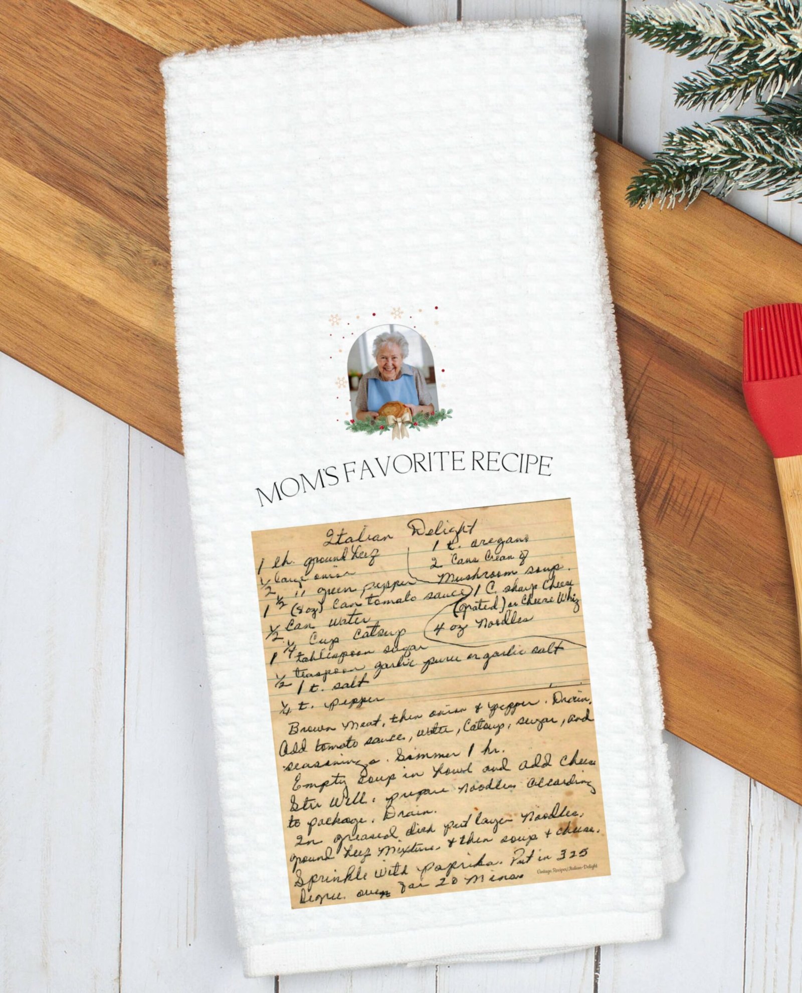 Preserve cherished family memories with our handwritten recipe towels, the perfect personalized kitchen gift. Each towel features a loved one’s original recipe, carefully cleaned up and printed on high-quality fabric for daily use or display. These custom recipe towels make thoughtful gifts for Mother’s Day, grandma’s birthday, Christmas, or memorial keepsakes, and are ideal for anyone who treasures family heirloom recipes. A unique and heartfelt kitchen decor gift, perfect for holidays, weddings, or housewarmings.